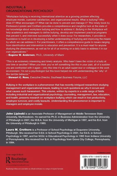 Bullying in the workplace is a phenomenon that has recently intrigued researchers studying management and organizational issues, leading to such questions as why it occurs and what causes such harassment. This volume written by experts in a wide range of fields including Industrial and Organizational psychology, Counseling, Management, Law, Education and Health presents research on relational and social aggression issues which can result in lost productivity , employee turnover and costly lawsuits. Understanding this phenomenon is important to managers and employee morale.