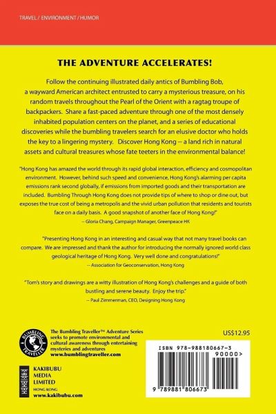 Bumbling Through Hong Kong is an educational yet comical adventure through the Hong Kong Special Administrative Region, and its many manmade and natural environments. The reader is taken on an entertaining journey of discovery by following the misadventures of a fictitious cast of bumbling backpackers as they stumble across the cultural traditions, natural assets and historic relics of Hong Kong; including the numerous environmental and social challenges faced by one of the most densely inhabited places on the planet. Awarded Bronze medal - Graphic Novel / Drawn Book category 2013 Independent Publisher (IPPY) Book Awards and Silver medal - Comic / Graphic Novel category 2013 Moonbeam Children's Book Awards.