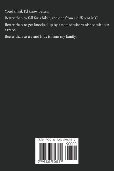 You'd think I'd know better. Better than to fall for a biker, and one from a different MC. Better than to get knocked up by a Nomad who vanished without a trace. Better than to try and hide it from my family.