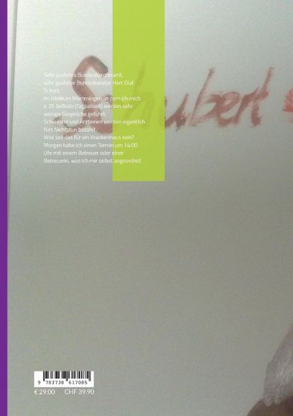 Sehr geehrtes Bundeskanzleramt,sehr geehrter Bundeskanzler Herr Olaf Scholz,im Klinikum Memmingen, in dem ich mich z. Zt. befinde (Tagpatient) werden sehr wenige Gespräche geführt.Schwester und Ärztinnen werden eigentlichfürs Nichtstun bezahlt.Was soll das für ein Krankenhaus sein?Morgen habe ich einen Termin um 14:00 Uhr mit einem Betreuer oder einer Betreuerin, was ich mir selbst angeordnet habe, die ich meine finanziellen Probleme selbst nicht mehr bewältigen kann. Das Betreuergespräch findet im Klinikum Memmingen auf der Station 3 D statt.Was ich nicht verstehe, ist, dass ich seit 3 Monaten nicht betreut worden bin, da die Betreuerin Frau Huber Attenhausen bei meinem Vater Rainer Schubert Polizeihauptkommissar i. R. angegeben hat, dass sie nicht mehr mit mir reden will.Die EC Karte gibt Frau Huber seit 01.01.23nicht heraus. Dies verstehe ich als Betrug durch Frau Huber Attenhausen.