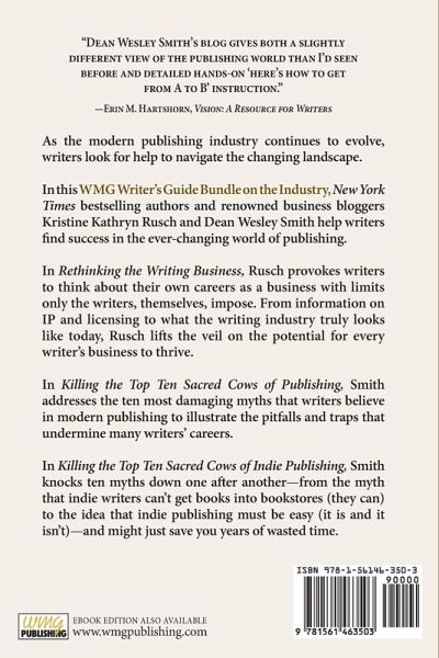 As the modern publishing industry continues to evolve, writers look for help to navigate the changing landscape. In this WMG Writer's Guide Bundle on the Industry, New York Times bestselling authors and renowned business bloggers Kristine Kathryn Rusch and Dean Wesley Smith help writers find success in the ever-changing world of publishing. In Rethinking the Writing Business, Rusch provokes writers to think about their own careers as a business with limits only the writers, themselves, impose. From information on IP and licensing to what the writing industry truly looks like today, Rusch lifts the veil on the potential for every writer's business to thrive. In Killing the Top Ten Sacred Cows of Publishing, Smith addresses the ten most damaging myths that writers believe in modern publishing to illustrate the pitfalls and traps that undermine many writers' careers. In Killing the Top Ten Sacred Cows of Indie Publishing, Smith knocks ten myths down one after another-from the myth that indie writers can't get books into bookstores (they can) to the idea that indie publishing must be easy (it is and it isn't)-and might just save you years of wasted time.