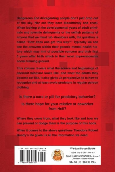 Dangerous and disregarding people don't just drop out of the sky. Nor are they born bloodthirsty and cruel. When looking at the developmental years of adult criminals and juvenile delinquents or the selfish patterns of anyone that we must rub shoulders with, the question is asked "How does one get this way?" Typically we can see the answers within their genetic mental health history which may hint of possible concern and their first 5 years after birth which is their most impressionable social training ground. This volume reveals what the source and beginnings of aberrant behavior looks like, and what the adults they become act like. It also gives us perspective as to how to recognize and at least avoid predators in regular person clothing. Is there a cure or pill for predatory behavior? Is there hope for your relative or coworker from Hell? Where they come from, what they look like and how we can prevent or dodge them is the purpose of this book. When it comes to the above questions Theodore Robert Bundy's life gives us all the information we need.