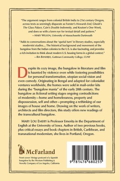 Despite its cozy image, the bungalow in literature and film is haunted by violence even while fostering possibilities for personal transformation, utopian social vision and even comedy. Originating in Bengal and adapted as housing for colonialist ventures worldwide, the homes were sold in mail-order kits during the "bungalow mania" of the early 20th century and enjoyed a revival at century's end. The bungalow as fictional setting stages ongoing contradictions of modernity--home and homelessness, property and dispossession, self and other--prompting a rethinking of our images of house and home. Drawing on the work of writers, architects and film directors, including Katherine Mansfield, E. M. Forster, Amitav Ghosh, Frank Lloyd Wright, Willa Cather, Buster Keaton and Walter Mosley, this study offers new readings of the transcultural bungalow.