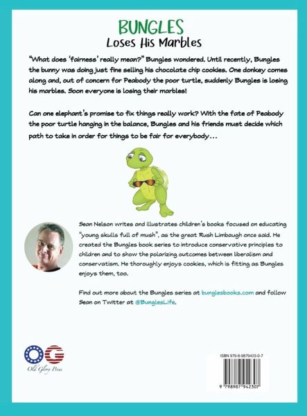 "What does 'fairness' really mean?" Bungles wondered. Until recently, Bungles the bunny was doing just fine selling his chocolate chip cookies. One donkey comes along and, out of concern for Peabody the poor turtle, suddenly Bungles is losing his marbles. Soon everyone is losing their marbles! Can one elephant's promise to fix things really work? With the fate of Peabody the poor turtle hanging in the balance, Bungles and his friends must decide which path to take in order for things to be fair for everybody... This is the first book of the Bungles series. All Bungles Books are family friendly and pro-America! 30 fun illustrations. Excellent for bedtime reading or reading to a group of kids!