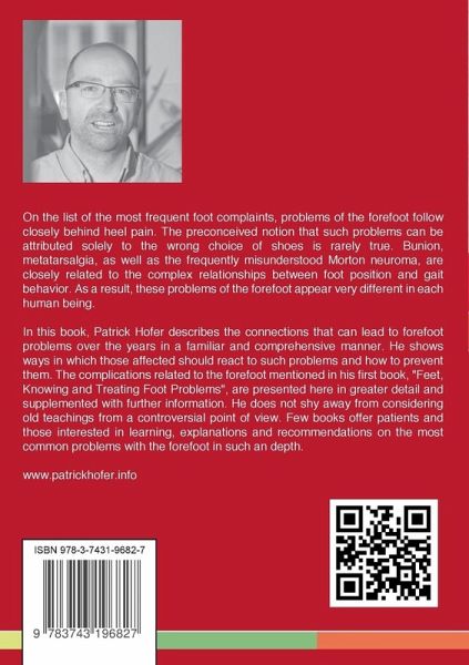 On the list of the most frequent foot complaints, problems of the forefoot follow closely behind heel pain. The preconceived notion that such problems can be attributed solely to the wrong choice of shoes is rarely true. Bunion, metatarsalgia, as well as the frequently misunderstood Morton neuroma, are closely related to the complex relationships between foot position and gait behavior. As a result, these problems of the forefoot appear very different in each human being.In this book, Patrick Hofer describes the connections that can lead to forefoot problems over the years in a familiar and comprehensive manner. He shows ways in which those affected should react to such problems and how to prevent them. The complications related to the forefoot mentioned in his first book, "Feet, Knowing and Treating Foot Problems", are presented here in greater detail and supplemented with further information. He does not shy away from considering old teachings from a controversial point of view. Few books offer patients and those interested in learning, explanations and recommendations on the most common problems with the forefoot in such an depth.