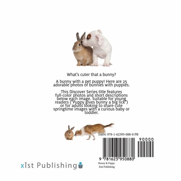 Discover Series Books for Babies & Toddlers What's cuter that a bunny? A bunny with a pet puppy! Here are 25 adorable photos of bunnies with puppies. This Discover Series title features full-color photos and short descriptions below each image. Suitable for young readers ("Puppy gives bunny a big lick") or for adults looking to share cute springtime images with a curious baby or toddler.