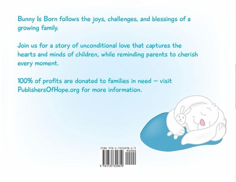 100% of profits are donated to families in need! Bunny Is Born follows the joys, challenges, and blessings of a growing family. Join us for a story of inspiration and hope. Perfect for new parents!