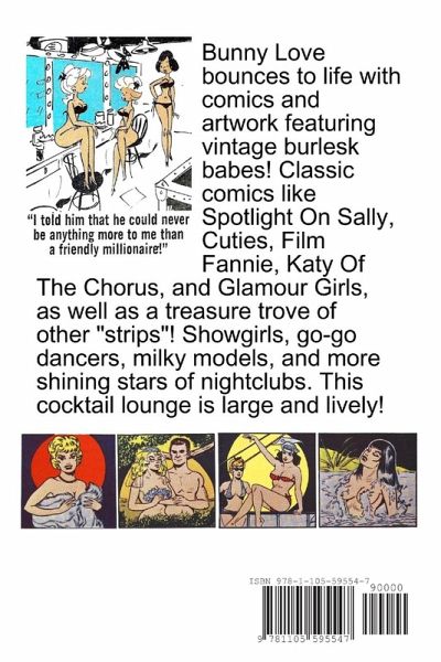 Bunny Love bounces to life with comics and artwork featuring vintage burlesk babes! Classic comics like Spotlight On Sally, Cuties, Film Fannie, Katy Of The Chorus, and Glamour Girls, as well as a treasure trove of other "strips"! Showgirls, go-go dancers, milky models, and more shining stars of nightclubs. This cocktail lounge is large and lively!