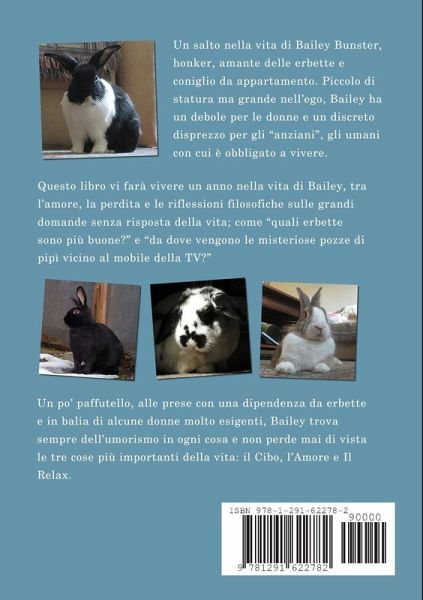Un salto nella vita di Bailey Bunster, honker, amante delle erbette e coniglio da appartamento. Piccolo di statura ma grande nell'ego, Bailey ha un debole per le donne e un discreto disprezzo per gli "anziani", gli umani con cui è obbligato a vivere. Questo libro vi farà vivere un anno nella vita di Bailey, tra l'amore, la perdita e le riflessioni filosofiche sulle grandi domande senza risposta della vita; come "quali erbette sono più buone?" e "da dove vengono le misteriose pozze di pipì vicino al mobile della TV?" Un po' paffutello, alle prese con una dipendenza da erbette e in balia di alcune donne molto esigenti, Bailey trova sempre dell'umorismo in ogni cosa e non perde mai di vista le tre cose più importanti della vita: il Cibo, l'Amore e Il Relax.