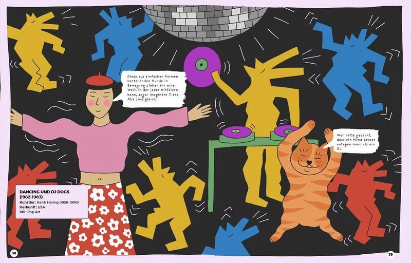 Was haben die Kunstschaffenden Jan Van Eyck, Frida Kahlo und Keith Haring oder Jeff Koons gemeinsam?Sie alle haben Hunde in ihren Kunstwerken verewigt.Dieses Buch lädt auf einen Spaziergang durch die Ausstellung über Hunde in der Kunst ein und erklärt diese anhand der haarigen Vierbeiner, die darin auftauchen. Folgt der vorlauten Museumskatze durch diese Ausstellung und lernt trotz ihrer spitzen Kommentare jede Menge Anekdoten und Fakten über Hunde in der Kunst.Bunte Hunde stellt eine Liste von Kunstwerken zusammen, die Hunde darstellen. Dabei erfährt man mehr über die Kunstschaffenden, über das Leben in verschiedenen Epochen und natürlich über Hunde. Dieses unterhaltsame Kindersachbuch ist eine erste Einführung in die verschiedenen Kunstrichtungen und verbindet Hunde, Katzen und jede Menge Spaß miteinander!