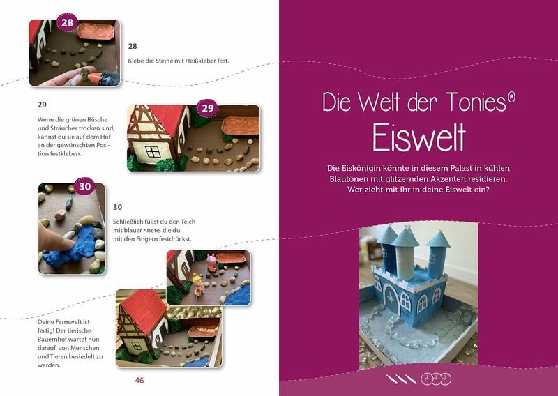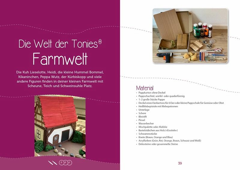 Ob Peppa Wutz, Wickie oder der kleine Drache Kokosnuss die Tonie®-Figuren erobern unzählige Kinderzimmer. Doch wohin mit den ganzen Figuren? Dieses Bastelbuch bietet zahlreiche Ideen für kreative Spielwelten, in denen die Figuren ein neues Zuhause finden: Die Eiskönigin Elsa kann im Eispalast leben, im Meer fühlt Nemo sich pudelwohl und im Wald finden der Räuber Hotzenplotz, Winnie Puuh oder der kleine Siebenschläfer ihren Platz. Mit diesen wunderbaren Welten sind die Figuren nicht nur perfekt verstaut, sie bieten auch eine fantasievolle Umgebung für neue Spielideen!