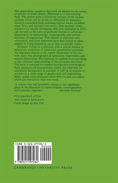 The phenomena treated in this book all depend on the action of gravity on small density differences in a non-rotating fluid. The author gives a connected account of the various motions which can be driven or influenced by buoyancy forces in a stratified fluid, including internal waves, turbulent shear flows and buoyant convection. This excellent introduction to a rapidly developing field, first published in 1973, can be used as the basis of graduate courses in university departments of meteorology, oceanography and various branches of engineering. This edition is reprinted with corrections, and extra references have been added to allow readers to bring themselves up to date on specific topics. Professor Turner is a physicist with a special interest in laboratory modelling of small-scale geophysical processes. An important feature is the superb illustration of the text with many fine photographs of laboratory experiments and natural phenomena.