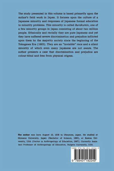 This is a profile of people known as Burakumin, a japanese minority group with a history of many centuries. The Burakumin is an "in visible race" which, unlike the Negro and other races in America, lacks stigma of color or other physical distinctions. Not invisible is it other wise, for Burakumin are unlike the majority japanese in a variety of cultural features historically derivative from discrimination and pre judice which Burakumin have long suffered. This study of Burakumin focused on the responses of two compulso ry schools to the problems of this minority group. Other research foci were integrated into this central concern of the study so as to provide a unified cultural perspective. Attention was given to such various aspects of Burakumin culture as: historical perspective, community life, struggles for emancipation, organizational activities, nature of and discrimination, attitudes and responses of non-Buraku prejudice min towards Burakumin. Education in its broadest sense is an indigenous cultural process by means of which the culture, whether literate or non-literate, can main tain its continuity; this process is widely woven into the complex fabric of man's life and his organized activities. Education in a formal sense, however, is institutionalized schooling engaged in cultural transmission and change. One of the practical advantages of studying education in an anthropological perspective is to treat it in the matrix of culture as education and culture relate to each other. The present study focused its attention upon formal education with only minor attention given to informal aspects.