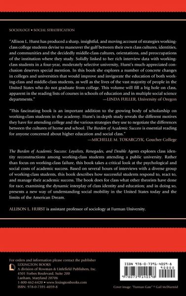 The Burden of Academic Success: Loyalists, Renegades, and Double Agents explores working-class college students' understandings of class and social mobility through in-depth interviews rich in ethnographic detail. This book is a compelling read for students and a much-needed addition to our understanding of how class operates today, both inside and outside of the classroom.
