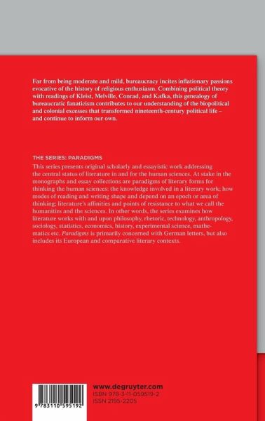At the end of the 18th century, a new and paradoxical kind of fanaticism emerged - rational fanaticism - that propelled the intensive biopolitical management of everyday life in Europe and North America as well as the extensive colonial exploitation of the earth and its peoples. These excesses of bureaucratization incited in turn increasingly fanatical forms of resistance. And they inspired literary production that provocatively presented the outrageous contours of rationalization. Combining political theory with readings of Kleist, Melville, Conrad, and Kafka, this genealogy of bureaucratic fanaticism relates two extreme figures: fanatical bureaucrats driven to the ends of the earth and to the limits of humanity by the rationality of the apparatuses they serve; and peculiar fanatics who passionately, albeit seemingly passively, resist the encroachments of bureaucratization.