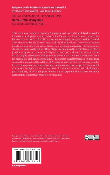 Part One: Bureaucracy as Structure.- Australian Indigenous Policy at the Intersection of Bureaucracy, Colonialism, Neoliberalism and Race.- Mending Bureaucracy's Splintered Soul: Cultural Subsidiarity for Indigenous Organisations.- terra nullius Social Policy.- Love, Moral Intensity and Governmentality: Representing Aboriginal and Torres Strait Islander Children in Public Policy.- 'Staying with the State': Prefiguring Capacities for Change within Indigenous Social policy.- Part Two: Bureaucracy as Institution.- Bureaucrats Managing the Ambiguities of Reform: a Case Study from Remote Indigenous Policy.- Authenticated Policy Knowledge: an Ethnographic Account of Evidence Use in Indigenous Health Policy.- Administrative Reform as Bureaucratic Violence in the Australian Northern Territory.- 'Ask Aboriginal People Yourself': Aboriginal and Torres Strait Islander Public Servants and the Problem of Substitution.- Revisioning Bureaucracy through First Nations Public Servant Stewardship.- Part Three: Bureaucracy as Encounter.- Bureaucratised Relationships: Contracting for Change.- Urban First Nations Organisations and the Effects of New Funding Rationalities and Technologies of Governing in the New Public Management Era.- The Inclusion and Control of Indigenous Organisations in the Delivery of Remote Employment Services.- Making the Intangible Count? Metrification of the Value of Culture.- Understanding and Transforming Indigenous Policy Evaluation.