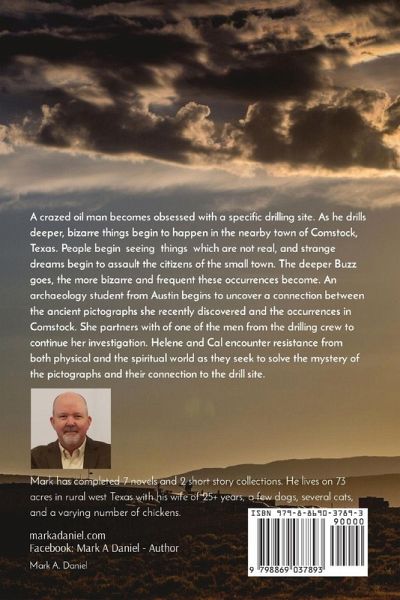 A crazed oil man becomes obsessed with a specific drilling site. As he drills deeper, bizarre things begin to happen in the nearby town of Comstock, Texas. People begin seeing things which are not real, and strange dreams begin to assault the citizens of the small town. The deeper Buzz goes, the more bizarre and frequent these occurrences become. An archaeology student from Austin begins to uncover a connection between the ancient pictographs she recently discovered and the occurrences in Comstock. She partners with of one of the men from the drilling crew to continue her investigation. Helene and Cal encounter resistance from both physical and the spiritual world as they seek to solve the mystery of the pictographs and their connection to the drill site.