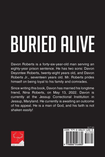 Davon Roberts is a forty-six-year-old man serving an eighty-year prison sentence. He has two sons: Davon Deyontee Roberts, twenty-eight years old, and Davon Roberts Jr., seventeen years old. Mr. Roberts prides himself on being loyal to his family and comrades. Since writing this book, Davon has married his longtime friend, Nina Roberts, on May 13, 2022. Davon is currently at the Jessup Correctional Institution in Jessup, Maryland. He currently is awaiting an outcome of his appeal. He is a man of God, and his faith is not shaken easily!
