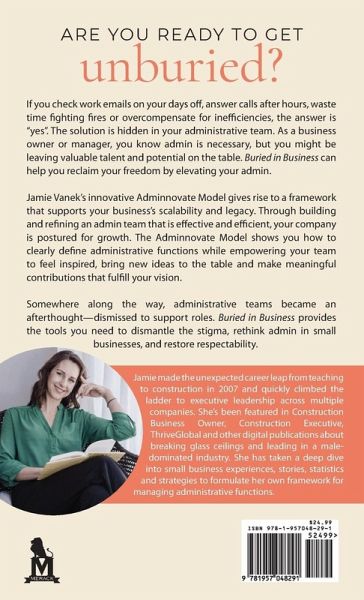 Are You Ready to Get Unburied? If you check work emails on your days off, answer calls after hours, waste time fighting fires or overcompensate for inefficiencies, the answer is "yes". The solution is hidden in your administrative team. As a business owner or manager, you know admin is necessary, but you might be leaving valuable talent and potential on the table. Buried in Business can help you reclaim your freedom by elevating your admin. Jamie Vanek's innovative Adminnovate Model gives rise to a framework that supports your business's scalability and legacy. Through building and refining an…mehr