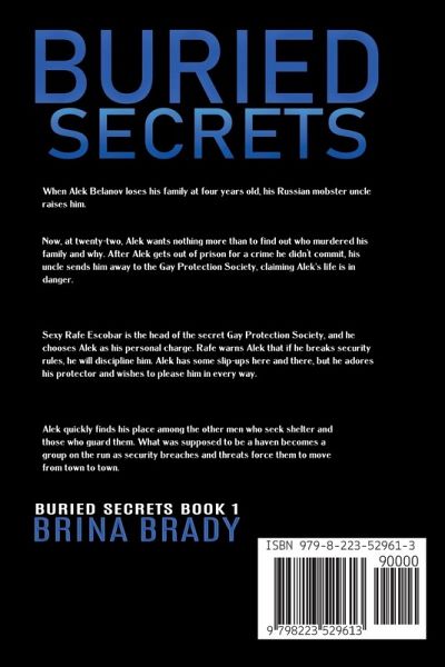 When Alek Belanov loses his family at four years old, his Russian mobster uncle raises him. Now, at twenty-two, Alek wants nothing more than to find out who murdered his family and why. After Alek gets out of prison for a crime he didn't commit, his uncle sends him away to the Gay Protection Society, claiming Alek's life is in danger. Sexy Rafe Escobar is the head of the secret Gay Protection Society, and he chooses Alek as his personal charge. Rafe warns Alek that if he breaks security rules, he will discipline him. Alek has some slip-ups here and there, but he adores his protector and wishes to please him in every way. Alek quickly finds his place among the other men who seek shelter and those who guard them. What was supposed to be a haven becomes a group on the run as security breaches and threats force them to move from town to town. Is Rafe and Alek's relationship strong enough to withstand the secrets and deceptions of people trying to destroy them?