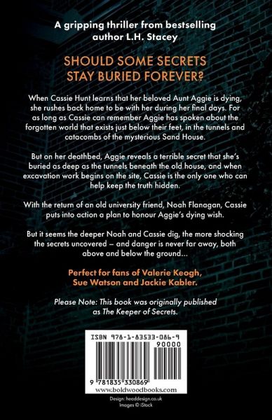 The next gripping thriller from bestselling author L.H. Stacey! Should some secrets stay buried forever? When Cassie Hunt learns that her beloved Aunt Aggie is dying, she rushes back home to be with her during her final days. For as long as Cassie can remember Aggie has spoken about the forgotten world that exists just below their feet, in the tunnels and catacombs of the mysterious Sand House. But on her deathbed, Aggie reveals a terrible secret that she's buried as deep as the tunnels beneath the old house, and when excavation work begins on the site, Cassie is the only one who can help keep the truth hidden. With the return of an old university friend, Noah Flanagan, Cassie puts into action a plan to honour Aggie's dying wish. But it seems the deeper Noah and Cassie dig, the more shocking the secrets uncovered - and danger is never far away, both above and below the ground... Please Note: This book was originally published as The Keeper of Secrets. Perfect for fans of Valerie Keogh, Sue Watson and Jackie Kabler. Readers LOVE L.H. Stacey! L. H. Stacey knows how to write a psychological thriller and is very adept at building suspense throughout. Sincerely Book Angels L. H. Stacey is a fantastic storyteller - setting the scene in a very descriptive way and bringing characters to life that you just have to emphasize with - so much emotion!!! Minimaxi