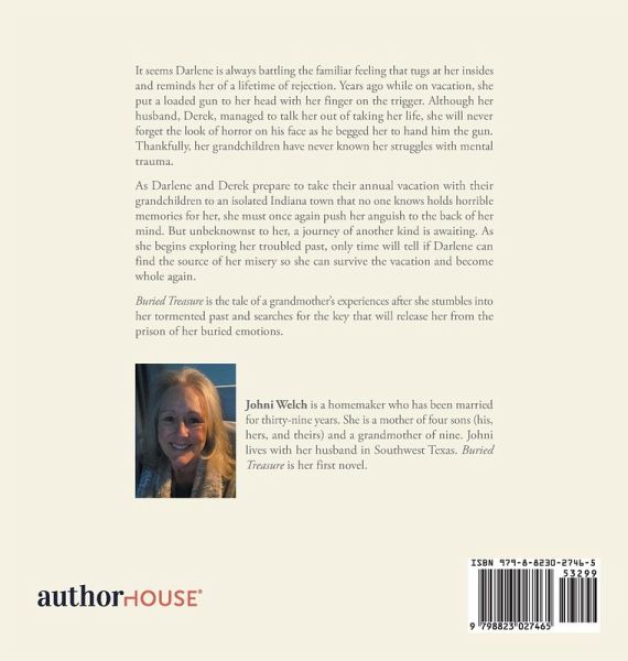 It seems Darlene is always battling the familiar feeling that tugs at her insides and reminds her of a lifetime of rejection. Years ago while on vacation, she put a loaded gun to her head with her finger on the trigger. Although her husband, Derek, managed to talk her out of taking her life, she will never forget the look of horror on his face as he begged her to hand him the gun. Thankfully, her grandchildren have never known her struggles with mental trauma. As Darlene and Derek prepare to take their annual vacation with their grandchildren to an isolated Indiana town that no one knows holds horrible memories for her, she must once again push her anguish to the back of her mind. But unbeknownst to her, a journey of another kind is awaiting. As she begins exploring her troubled past, only time will tell if Darlene can find the source of her misery so she can survive the vacation and become whole again. Buried Treasure is the tale of a grandmother's experiences after she stumbles into her tormented past and searches for the key that will release her from the prison of her buried emotions.