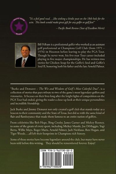 "Burke and Demaret-The Wit and Wisdom of Golf's Most Colorful Duo", is a collection of stories that pays tribute to two of the game's most legendary golfers and visionaries. It focuses on their lives long after the bright lights of competition on the PGA Tour had ended, giving the reader a close-up look at their unique personalities and incredible friendship. Jack Burke and Jimmy Demaret not only created a golf club that stands today as a beacon to their community and the State of Texas but did so with the same kind of flair and flamboyance that made them famous to an entire nation of golfers. From celebrities like Bob Hope, Bing Crosby, James Garner and Mickey Rooney, to some of the greats of every sport, including Mickey Mantle, Joe DiMaggio, Yogi Berra, Willie Mays, Roger Maris, Arnold Palmer, Jack Nicklaus, Ben Hogan, and Tiger Woods....all left their footprints in Champions rich history. Some of these stories have become legendary around the club, but many have never been told before this writing. They should be remembered forever. Enjoy!