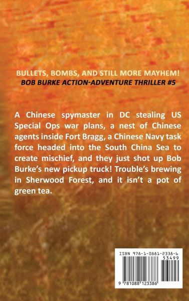 Bullets, Bombs, and Mayhem! New Thriller. Bob Burke Volume #5. 4.7 Stars on 403 Amazon Reviews! A Chinese spymaster in DC stealing US Special Ops war plans, a nest of Chinese agents inside Fort Bragg, a Chinese Navy task force headed into the South China Sea to create mischief, and they just shot up Bob Burke's new pickup truck. Trouble's brewing in Sherwood Forest, and it isn't a pot of green tea. Kidnappings, rockets, spies, naval battles on the high seas, military secrets, sniper rifles, and the Geeks! It's the most intricate, and exciting Bob Burke action-adventure yet. Grab one and Enjoy!…mehr