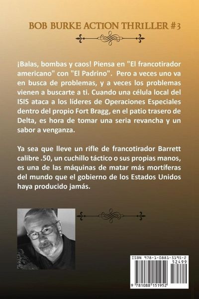 !Balas, bombas y caos! Bob Burke ha vuelto... de nuevo. 4,5 estrellas en 603 US Amazon críticas. Excelente nueva traducción 5-21-23.! Después de sus recientes aventuras en Burke's War y Burke's Gamble, todo lo que este ex francotirador, Ranger del Ejército y comandante de la Fuerza Delta quiere es establecerse en su granja de Carolina del Norte y dejar que Irak, Afganistán y sus recientes "polvos" con las mafias de Chicago y Nueva York se desvanezcan. Pero a veces uno va en busca de problemas, y a veces los problemas vienen a buscarte a ti. Cuando una célula local del ISIS ataca a los líderes de Operaciones Especiales dentro del propio Fort Bragg, en el patio trasero de Delta, es hora de tomar una seria revancha y un sabor a venganza. A menudo se le descarta como el "chico del teléfono", pero sus antiguos sargentos Delta pueden atestiguar que, tanto si lleva un rifle de francotirador Barrett del calibre 50 como un cuchillo táctico o sus propias manos, es una de las máquinas de matar más letales que ha producido el Gobierno de los Estados Unidos. Cuando el C-4 se carga a un amigo cercano y a uno de los suyos, los "Hombres Alegres del Bosque de Sherwood" -Bob Burke, Ace Randall, una agente del CID, los Geeks, un piloto de helicóptero inconformista y un gran gato de foso- tienen que igualar la situación antes de que los terroristas ataquen un objetivo militar estadounidense aún más importante a sólo 200 millas de distancia. En busca de un buen libro de playa o de algo con lo que acurrucarse frente al fuego, este trepidante thriller conspirativo es del autor de La guerra de Burke, La apuesta de Burke, La venganza de Burke, El samovar de Burke, el nuevo El mandarín de Burke y el próximo El rescate de Burke, The Undertaker, Amongst My Enemies, Thursday at Noon, Winner Lose All y Aim True, My Brothers, así como la serie Our Vietnam Wars, volúmenes 1-4, con entrevistas y fotos de 240 veteranos estadounidenses y aliados. En conjunto, estos libros tienen más de 1,000 reseñas Kindle de 5 estrellas. ¡Que lo disfruten!