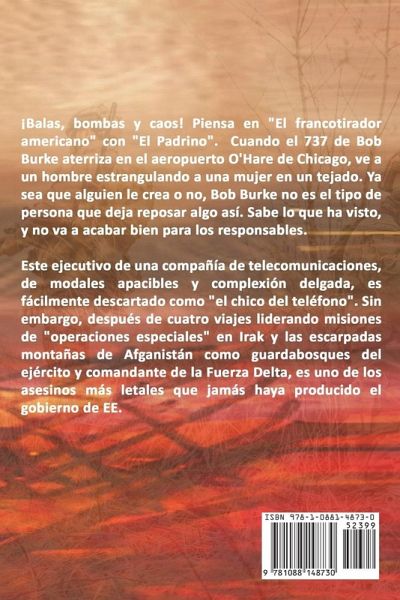¡Balas, bombas y caos! Piensa en "El francotirador americano" con "El Padrino". 4.4 Stars en 1534 Reseñas de US Amazon. Excelente nueva traducción 5-21-23 Cuando el 737 de Bob Burke aterriza en el aeropuerto O'Hare de Chicago, ve a un hombre estrangulando a una mujer en un tejado. Tanto si le creen como si no, Bob Burke no es el tipo de persona que deja reposar algo así. Sabe lo que ha visto, y no va a acabar bien para los responsables. De modales suaves y complexión delgada, este ejecutivo de una empresa de telecomunicaciones es fácilmente descartado como el "chico del teléfono". Sin embargo, después de cuatro giras dirigiendo misiones de "operaciones especiales" en Irak y en las escarpadas montañas de Afganistán como Ranger del Ejército y comandante de la Fuerza Delta, es uno de los asesinos más letales que ha producido el gobierno estadounidense. Su nueva zona de combate puede ser un reluciente edificio de oficinas, una casa suburbana o un parque arbolado del distrito de la Reserva Forestal de Chicago, pero cuando los cadáveres empiezan a caer y una joven necesita ayuda, el Fantasma no lo duda. Al fin y al cabo, ellos empezaron, y él tiene la intención de terminarlo. Y si necesita un poco de apoyo, sabe a quién llamar en Fort Bragg. Después de todo, no sería justo dejarlos fuera de la diversión, ¿verdad? En busca de un buen libro de playa o de algo con lo que acurrucarse frente al fuego, este trepidante thriller conspirativo es del autor de La guerra de Burke, La apuesta de Burke, La venganza de Burke, El samovar de Burke, el nuevo El mandarín de Burke y el próximo El rescate de Burke, The Undertaker, Amongst My Enemies, Thursday at Noon, Winner Lose All y Aim True, My Brothers, así como la serie Our Vietnam Wars, volúmenes 1-4, con entrevistas y fotos de 240 veteranos estadounidenses y aliados. En conjunto, estos libros tienen más de 1.00 reseñas Kindle de 5 estrellas. ¡Que lo disfruten!