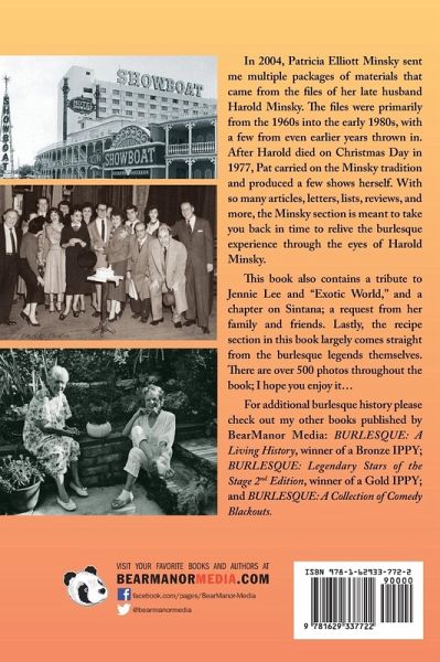 In 2004, Patricia Elliott Minsky sent me multiple packages of materials that came from the files of her late husband Harold Minsky. The files were primarily from the 1960s into the early 1980s, with a few from even earlier years thrown in. After Harold died on Christmas Day in 1977, Pat carried on the Minsky tradition and produced a few shows herself. With so many articles, letters, lists, reviews, and more, the Minsky section is meant to take you back in time to relive the burlesque experience through the eyes of Harold Minsky. This book also contains a tribute to Jennie Lee and "Exotic World," and a chapter on Sintana; a request from her family and friends. Lastly, the recipe section in this book largely comes straight from the burlesque legends themselves. There are over 500 photos throughout the book; I hope you enjoy it... For additional burlesque history please check out my other books published by BearManor Media: BURLESQUE: A Living History, winner of a Bronze IPPY; BURLESQUE: Legendary Stars of the Stage 2nd Edition, winner of a Gold IPPY; and BURLESQUE: A Collection of Comedy Blackouts.