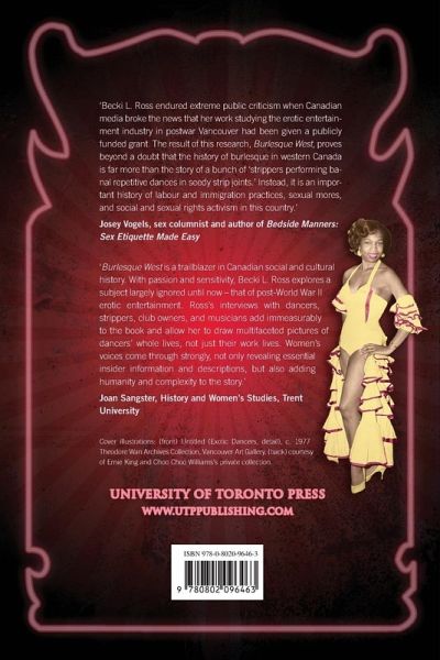After the Second World War, Vancouver emerged as a hotbed of striptease talent. In Burlesque West,the first critical history of this notorious striptease scene, Becki Ross delves into the erotic entertainment industry at the northern end of the dancers' west coast tour - the North-South route from Los Angeles to Vancouver that provided rotating work for dancers and variety for club clientele. Drawing on extensive archival materials and fifty first-person accounts of former dancers, strip-club owners, booking agents, choreographers, and musicians, Ross reveals stories that are deeply flavoured…mehr