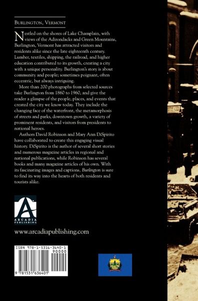 Nestled on the shores of Lake Champlain, with views of the Adirondacks and Green Mountains, Burlington, Vermont has attracted visitors and residents alike since the late eighteenth century. Lumber, textiles, shipping, the railroad, and higher education contributed to its growth, creating a city with a unique personality. Burlington's story is about community and people; sometimes poignant, often eccentric, but always intriguing. More than 200 photographs from selected sources take Burlington from 1860 to 1960, and give the reader a glimpse of the people, places, and events that created the city we know today. They include the changing face of the waterfront, the metamorphosis of streets and parks, downtown growth, a variety of prominent residents, and visitors from presidents to national heroes.