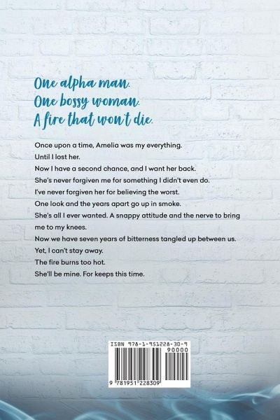 One alpha man. One bossy woman. A fire that won’t die. Once upon a time, Amelia was my everything. Until I lost her. Now I have a second chance, and I want her back. She’s never forgiven me for something I didn’t even do. I’ve never forgiven her for believing the worst. One look and the years apart go up in smoke. She’s all I ever wanted. A snappy attitude and the nerve to bring me to my knees. We have seven years of bitterness tangled up between us. Yet, I can’t stay away. The fire burns too hot. She’ll be mine. For keeps this time. *This is a full-length standalone romance with a guaranteed happily-ever-after.