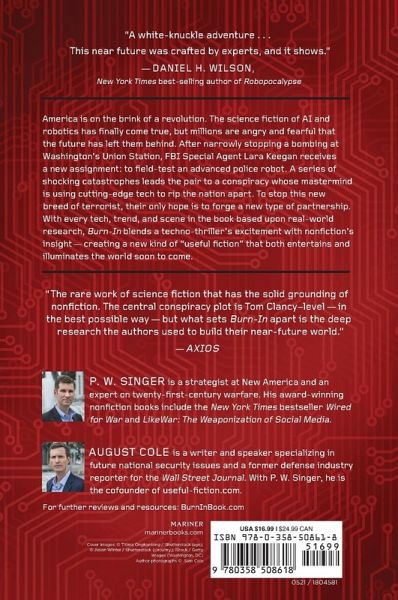 “A white-knuckle adventure . . . This near-future was crafted by experts, and it shows.”—Daniel H. Wilson, New York Times best-selling author of Robopocalypse “Fantastic, compelling, and authoritative.” —General David Petraeus (US Army, Ret.) An FBI agent hunts a new kind of terrorist through a Washington, DC, of the future in this ground-breaking book—at once a gripping technothriller and a fact-based tour of tomorrow. America is on the brink of a revolution, one both technological and political. After narrowly stopping a bombing at Washington’s Union Station, FBI Special Agent Lara Keegan receives a new assignment: to field-test an advanced police robot. As a series of shocking catastrophes unfolds, the two find themselves investigating a conspiracy whose mastermind is using cutting-edge tech to rip the nation apart. With every tech, trend, and scene drawn from real-world research, Burn-In blends a techno-thriller’s excitement with nonfiction’s insight to illuminate the darkest corners of the world soon to come.