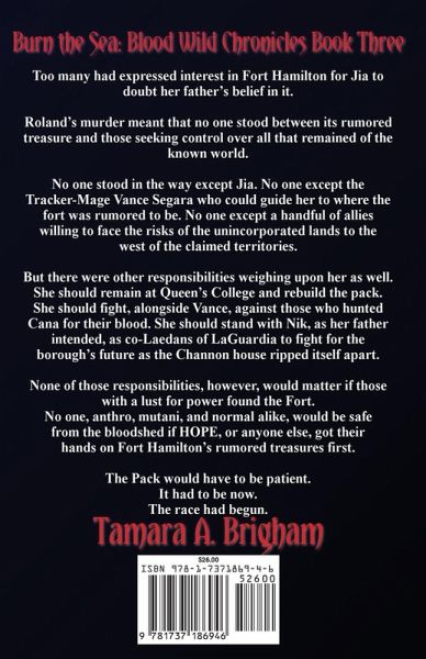 Blood Wild Chronicles Book Three Too many had expressed interest in Fort Hamilton for Jia to doubt her father's belief in it. Roland's murder meant that no one stood between its rumored treasure and those seeking control over all that remained of the known world. No one stood in the way except Jia. No one except the Tracker-Mage Vance Segara who could guide her to where the fort was rumored to be. No one except a handful of allies willing to face the risks of the unincorporated lands to the west of the claimed territories. But there were other responsibilities weighing upon her as well. She should remain at Queen's College and rebuild the pack. She should fight, alongside Vance, against those who hunted Cana for their blood. She should stand with Nik, as her father intended, as co-Laedans of LaGuardia to fight for the borough's future as the Channon house ripped itself apart. None of those responsibilities, however, would matter if those with a lust for power found the Fort. No one, anthro, mutani, and normal alike, would be safe from the bloodshed if HOPE, or anyone else, got their hands on Fort Hamilton's rumored treasures first. The Pack would have to be patient. It had to be now. The race had begun.