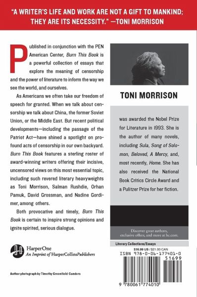 Published in conjunction with the PEN American Center, Burn This Book is a powerful collection of essays that explore the meaning of censorship and the power of literature to inform the way we see the world, and ourselves. As Americans we often take our freedom of speech for granted. When we talk about censorship we talk about China, the former Soviet Union, or the Middle East. But recent political developments?including the passage of the Patriot Act?have shined a spotlight on profound acts of censorship in our own backyard. Burn This Book features a sterling roster of award-winning writers offering their incisive, uncensored views on this most essential topic, including such revered literary heavyweights as Toni Morrison, Salman Rushdie, Orhan Pamuk, David Grossman, and Nadine Gordimer, among others. Both provocative and timely, Burn This Book is certain to inspire strong opinions and ignite spirited, serious dialogue.