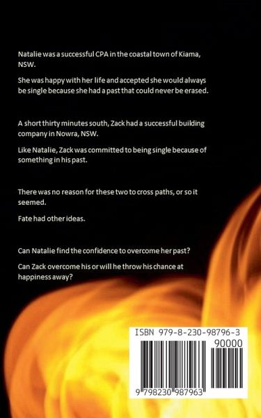 Natalie was a successful CPA in the coastal town of Kiama, NSW. She was happy with her life and accepted she would always be single because she had a past that could never be erased. A short thirty minutes south, Zack had a successful building company in Nowra, NSW. Like Natalie, Zack was committed to being single because of something in his past. There was no reason for these two to cross paths, or so it seemed. Fate had other ideas. Can Natalie find the confidence to overcome her past? Can Zack overcome his, or will he throw away his chance of experiencing happiness in love?