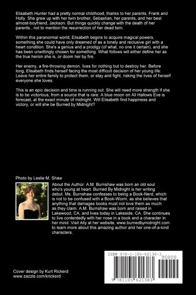 Elisabeth Hunter always felt as if the weight of the world was on her shoulders...She has felt love, loss, and love again...And she has felt heartbreak that would ruin most. But now, the weight of the world is literally on her shoulders, and she must fight to keep everything --and everyone-- she loves alive, WITHOUT killing herself in the process. With her new angel-like powers and her heart of gold, it's all up to Ellie to defeat the fire-throwing demon known as Flint, but if she's not careful, she'll find herself Burned by Midnight...