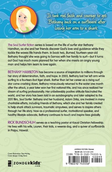 It took real faith and courage to get Bethany back on a surfboard after losing her arm to a shark. The Soul Surfer fiction series is based on the life of surfer star Bethany Hamilton, as she and her friends discover God's love and guidance as they tackle the waves life hands them. In book two, Burned, fourteen-year-old Bethany thought she was going to Samoa with her family to surf--but it turns out God has much more planned for her when she meets an angry, young man and helps him learn to love again.