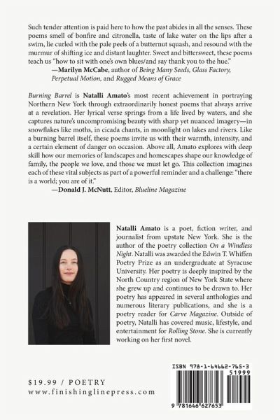 Burning Barrel explores the beauty and danger of nature. It interrogates home - why we leave and come back. "Price Chopper, Alex Bay" was nominated for the 2020/2021 Best Of The Net Anthology. ¿