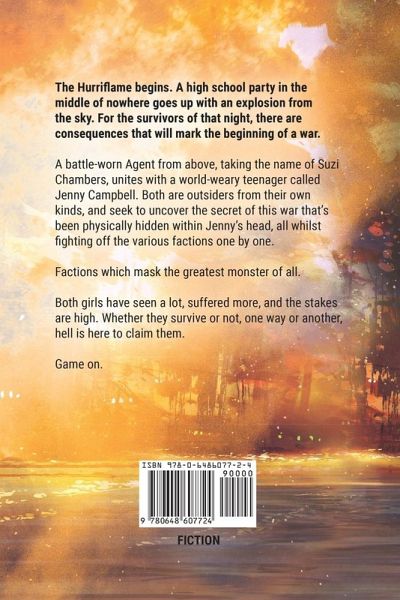 The Hurriflame begins. A high school party in the middle of nowhere goes up with an explosion from the sky. For the survivors of that night, there are consequences that will mark the beginning of a war. A battle-worn Agent from above, taking the name of Suzi Chambers, unites with a world-weary teenager called Jenny Campbell. Both are outsiders from their own kinds, and seek to uncover the secret of this war that's been physically hidden within Jenny's head, all whilst fighting off the various factions one by one. Factions which mask the greatest monster of all. Both girls have seen a lot, suffered more, and the stakes are high. Whether they survive or not, one way or another, hell is here to claim them. Game on.