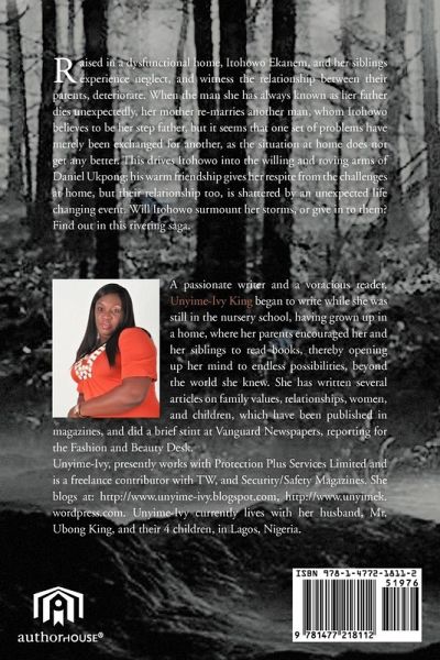 Raised in a dysfunctional home, Itohowo Ekanem, and her siblings experience neglect, and witness the relationship between their parents, deteriorate. When the man she has always known as her father dies unexpectedly, her mother re-marries another man, whom Itohowo believes to be her step father, but it seems that one set of problems have merely been exchanged for another, as the situation at home does not get any better. This drives Itohowo into the willing and roving arms of Daniel Ukpong; his warm friendship gives her respite from the challenges at home, but their relationship too, is shattered by an unexpected life changing event. Will Itohowo surmount her storms, or give in to them? Find out in this riveting saga.