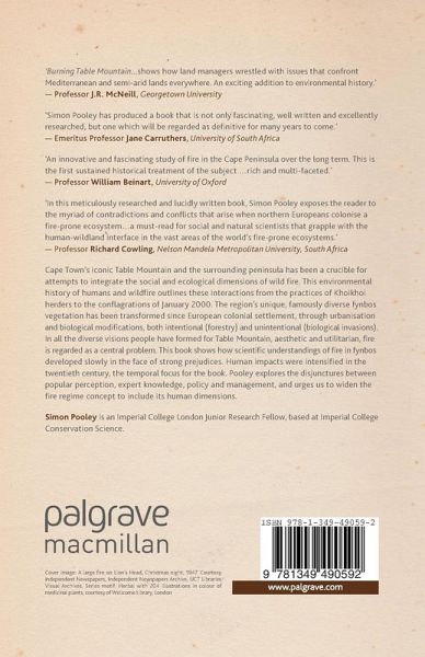 "Burning Table Mountain is a work of history, and, as such, Simon Pooley tells the story based on painstakingly detailed evidence from state archives, historical newspapers, and the like, but he also relies on interviews with fire researchers and environmental managers. ... The book covers a lot of useful ground, and will certainly interest students of environmental history, fire management, and South Africa." (Christian A. Kull, Journal of Historical Geography, Vol. 51 (1), January, 2016)