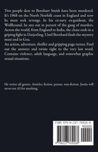 Two people dear to Bernhart Smith have been murdered. It's 1968 on the North Norfolk coast in England and now he must seek revenge. In his ex-navy ex-gunboat, the Wolfhound, he sets out in pursuit of the gang of murders. Across the world, from England to India, the chase ends in a griping fight in Darjeeling. Until Bernhard finds the mystery must end in Goa. An action, adventure, thriller and gripping page turner. Find out the answers and twists right to the very last word. Contains violence, adult language, and somewhat graphic sexual situations.