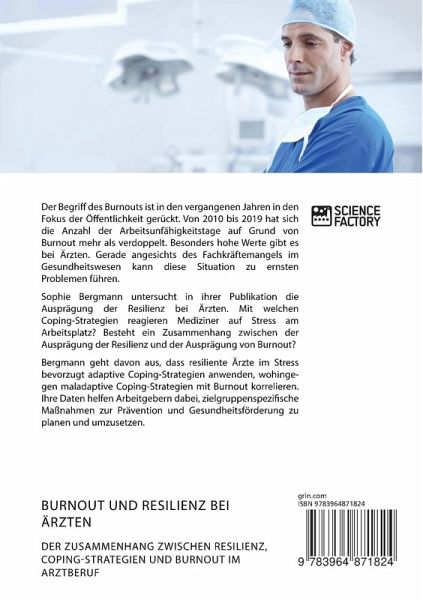 Der Begriff des Burnouts ist in den vergangenen Jahren in den Fokus der Öffentlichkeit gerückt. Von 2010 bis 2019 hat sich die Anzahl der Arbeitsunfähigkeitstage auf Grund von Burnout mehr als verdoppelt. Besonders hohe Werte gibt es bei Ärzten. Gerade angesichts des Fachkräftemangels im Gesundheitswesen kann diese Situation zu ernsten Problemen führen.Sophie Bergmann untersucht in ihrer Publikation die Ausprägung der Resilienz bei Ärzten. Mit welchen Coping-Strategien reagieren Mediziner auf Stress am Arbeitsplatz? Besteht ein Zusammenhang zwischen der Ausprägung der Resilienz und der Ausprägung von Burnout?Bergmann geht davon aus, dass resiliente Ärzte im Stress bevorzugt adaptive Coping-Strategien anwenden, wohingegen maladaptive Coping-Strategien mit Burnout korrelieren. Ihre Daten helfen Arbeitgebern dabei, zielgruppenspezifische Maßnahmen zur Prävention und Gesundheitsförderung zu planen und umzusetzen.Aus dem Inhalt:- lineare Regressionsanalyse;- Mediatoranalyse;- Oldenburg Burnout Inventar;- Resilienzskala;- Widerstandsfähigkeit