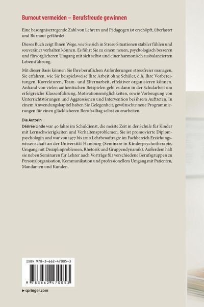 Mit dieser Basis können Sie Ihre beruflichen Anforderungen stressfreier managen. Sie erfahren, wie Sie beispielsweise Ihre Arbeit ohne Schüler, d.h. Ihre Vorbereitungen, Korrekturen, Team- und Elternarbeit, effektiver organisieren können. Anhand von vielen authentischen Beispielen geht es dann in der Schularbeit um erfolgreiche Klassenführung, Motivationsmöglichkeiten, sowie Vorbeugung von Unterrichtstörungen und Aggressionen und Intervention bei ihrem Auftreten. In einem Anwendungskapitel haben Sie Gelegenheit, gewünschte neue Programmierungen für einen glücklicheren Berufsalltag selbst zu erarbeiten.