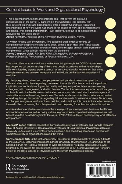 This book offers an extensive look into the ways living through the COVID-19 pandemic has deepened our understanding of the crises people experience in their relationships with work. Leading experts explore burnout as an occupational phenomenon that arises through mismatches between workplace and individuals on the day-to-day patterns in work life.