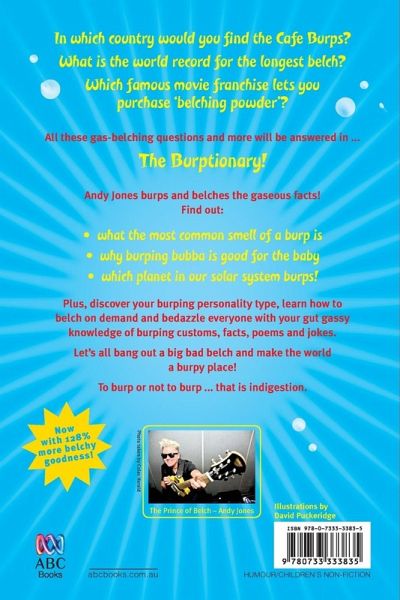 Andy Jones continues his hilarious journey through the human digestive system and tells you everything you (n)ever wanted toknow about BURPS! Whether they be lady-like hiccups or onion-breath stinkers, burps are an essential part of the human experience. the Burptionary is jam-packed full of belchy facts, gaseous jokes and burp-tastic riddles and rhymes, and is guaranteed to have boys everywhere laughing till they spew.
