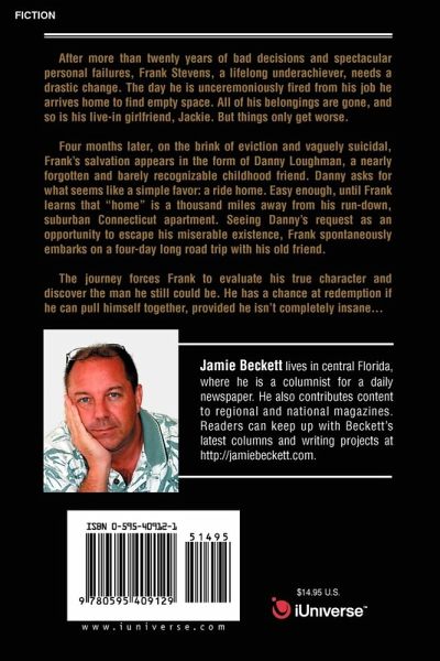 After more than twenty years of bad decisions and spectacular personal failures, Frank Stevens, a lifelong underachiever, needs a drastic change. The day he is unceremoniously fired from his job he arrives home to find empty space. All of his belongings are gone, and so is his live-in girlfriend, Jackie. But things only get worse. Four months later, on the brink of eviction and vaguely suicidal, Frank's salvation appears in the form of Danny Loughman, a nearly forgotten and barely recognizable childhood friend. Danny asks for what seems like a simple favor: a ride home. Easy enough, until Frank learns that "home" is a thousand miles away from his run-down, suburban Connecticut apartment. Seeing Danny's request as an opportunity to escape his miserable existence, Frank spontaneously embarks on a four-day long road trip with his old friend. The journey forces Frank to evaluate his true character and discover the man he still could be. He has a chance at redemption if he can pull himself together, provided he isn't completely insane.